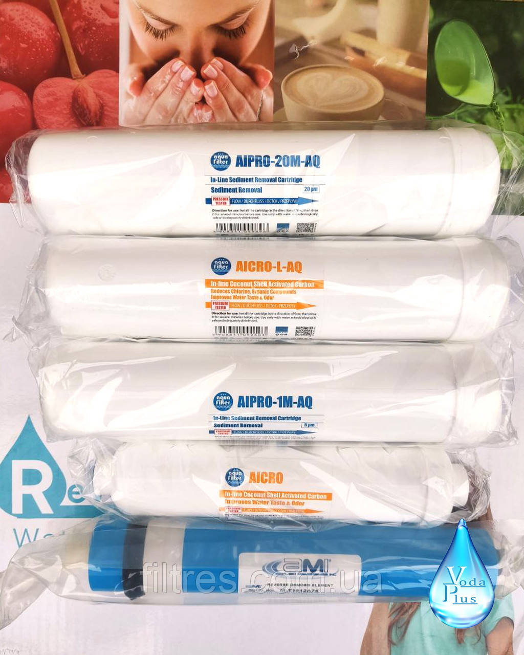 - Картридж механічний Aquafilter AIPRO-20M 20 мікронів (фільтрувальний елемент in-line, встановлюється як перший картридж у системі та являє собою рівноцінний аналог картриджу Zepter WT-100-72, який входить до початкової комплектації, і нічим не поступається йому. Основна функція — видаляти з води пісок, іржу, дрібні забруднення);